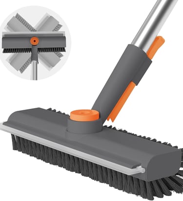 Make cleaning fast and effortless with this 3-in-1 Floor Scrub Brush! Designed with a 360° rotating head, a dual-sided bristle brush, and a built-in scraper, it tackles stubborn grime on floors, walls, showers, patios, and more. The extendable long handle lets you clean without bending or straining, and the tough bristles plus rubber squeegee sweep away dirt and water with ease. A versatile cleaning helper for bathrooms, kitchens, garages, and outdoor areas!