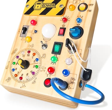 Wooden Montessori busy board toy for toddler sensory learning fun.