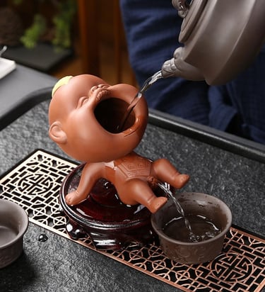 Add a touch of artistic charm to your tea set or home décor with this Chinese Ceramic Tea Pet Buddha Statue Monk. Crafted from glazed ceramic with fine enamel details, this figurine brings a playful and serene accent to your tea table, desk, shelf, or meditation space. It’s a unique ornament that blends traditional craft with whimsical character — perfect for tea lovers and art enthusiasts alike.