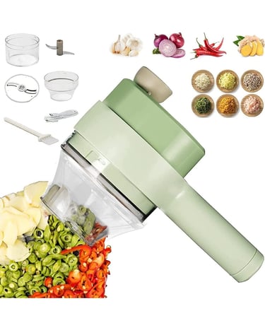 This 4-in-1 electric vegetable cutter set is a handy gadget for any kitchen. It’s portable, rechargeable, and wireless — perfect for chopping garlic, onions, peppers, celery, and even meat. The blades are sharp and the motor is surprisingly powerful for its size. Easy to clean and saves tons of prep time. Great for busy cooks and small kitchens!