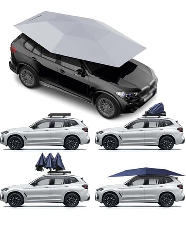 This full-automatic car umbrella is a game-changer for vehicle protection. The remote control makes opening and closing super easy, while the metal link frame keeps it stable even in wind. The 210D Oxford tarpaulin cloth is tough, weatherproof, and reliable. Great for shielding your car from sun, rain, and dust. A practical gadget for any car owner!