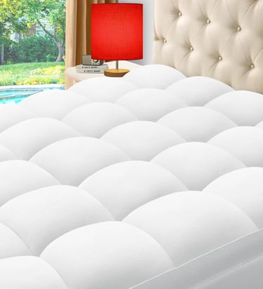 Upgrade your sleep instantly with the ELEMUSE Cooling Bamboo Mattress Topper. Designed for back pain relief and hot sleepers, it combines breathable bamboo viscose fabric with an overfilled plush pillowtop. The ultra-soft down alternative filling adds comfort without trapping heat, while the deep elastic pocket keeps it perfectly in place all night.