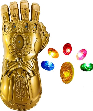 Realistic Thanos gauntlet with glowing stones, perfect for cosplay fans.