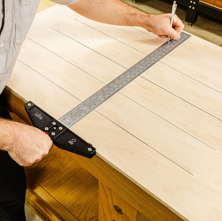 Achieve flawless accuracy in every project with the JessEm Longsword 18″ Precision T-Square. Crafted from premium stainless steel, this professional measuring tool features clear imperial and metric scales for total versatility. The patented Flex Grip design ensures a stable, slip-free hold when marking vertical or horizontal lines, while the balanced structure delivers true 90° accuracy every time. Built for serious woodworkers, cabinetmakers, and precision layout work, it’s a tool you’ll rely on for years of exact results.