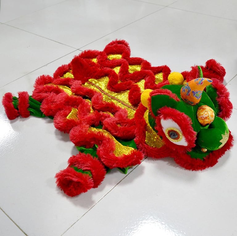 Festive lion dance dog hoodie: warm, bold, and adorable.