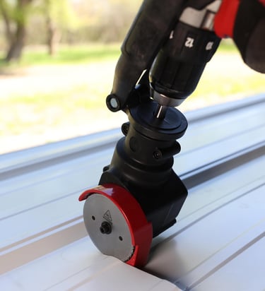 Rotary drill cutter, smooth precise cuts, metal and vinyl panels.