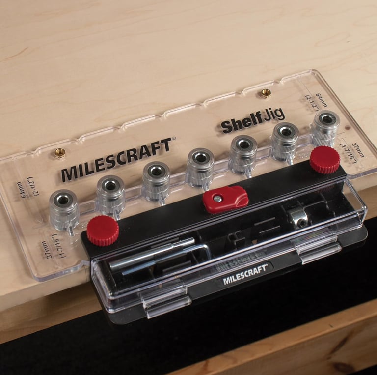 Create perfectly aligned adjustable shelves like a pro with the Milescraft 1343 Shelf Jig. Designed with standard 32mm spacing, this precision jig drills accurate 1/4" and 5mm shelf pin holes using the included brad-point bits. The clear polycarbonate body improves visibility and reduces mistakes, while hardened steel bushings ensure straight, clean holes every time. With indexing pins for unlimited hole rows and a detachable fence offering 37mm or 64mm setbacks, it’s ideal for cabinet builds, pantry installs, and custom woodworking projects. Accurate, efficient, and beginner-friendly.