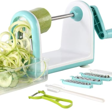 Create healthy veggie noodles and chips easily with 5 sharp blades.