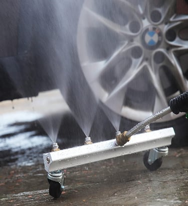 Powerful washer tool cleans under vehicles removing dirt oil easily.