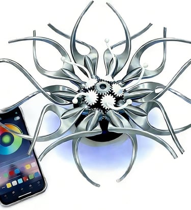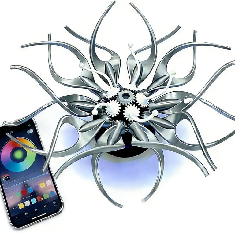 Elevate your space with this RGB Mechanical Spiral Table Lamp. Featuring a precision gear system and 3D-printed mechanical flower design, it blends modern art with tech aesthetics. Multi-color RGB lighting and remote control let you customize mood, speed, and brightness—perfect for desks, studios, and creative interiors.