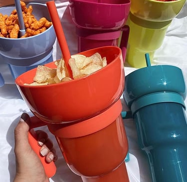 Make snacking easier with this 2-in-1 combo cup—perfect for popcorn, drinks, and on-the-go treats at movies, games, travel, or kids’ snacks.
