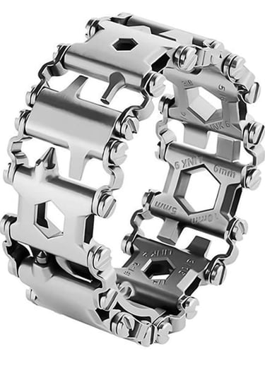 This 29-in-1 multitool bracelet is both practical and fashionable. Made of durable stainless steel, it’s perfect for outdoor adventures, travel, or daily use. The integrated tools, including a pry tool, are surprisingly useful in a compact, wearable design. Comfortable to wear and easy to access whenever needed. Great gift for men who love gadgets and travel gear!