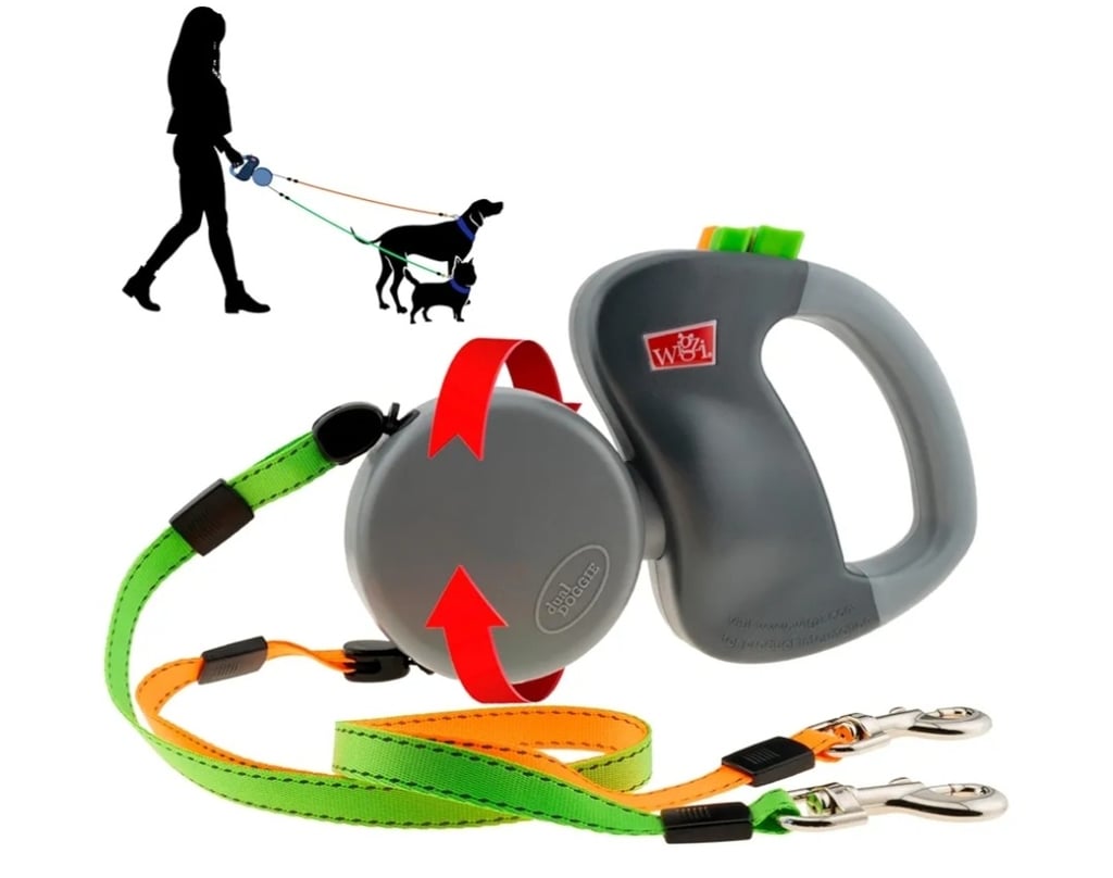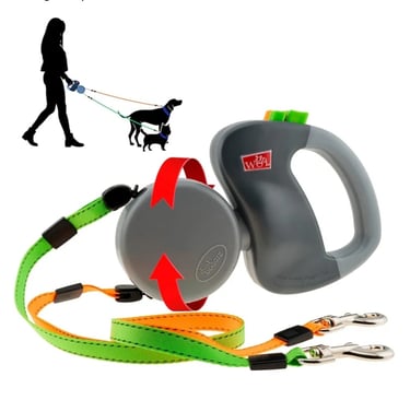 Walking two dogs just got easier with the WIGZI 2025 Dual Retractable Leash. This smart leash features an auto-untangling mechanism, letting each pup roam freely without getting twisted. Each leash extends up to 10 feet, supports dogs up to 50 lbs, and is color-coded for easy control. Reflective leads keep you visible in low light, and the waterproof, durable design is made for all-weather adventures. Perfect for hassle-free, hands-on walks with your furry companions.
