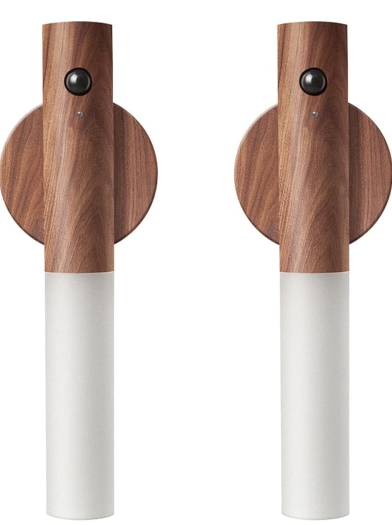 Wooden Motion Sensor LED Night Lights | Rechargeable Wireless Wall Sconces (2PCS)